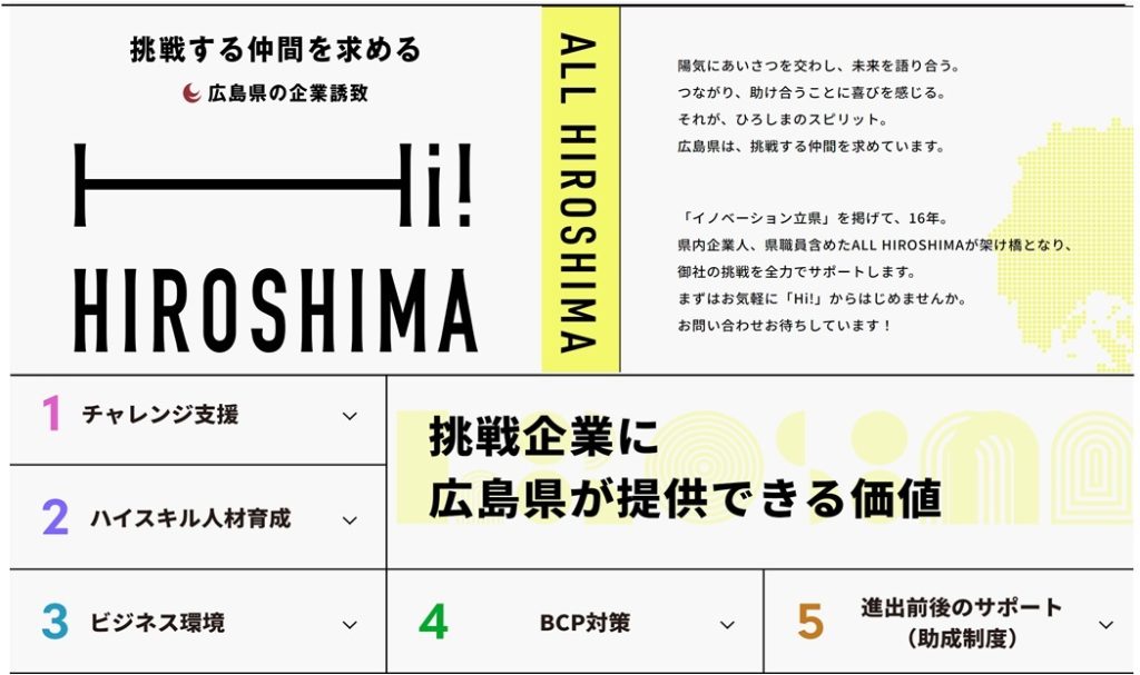 ■広島県企業誘致HP「Hi!HIROSHIMA」|トップページ
