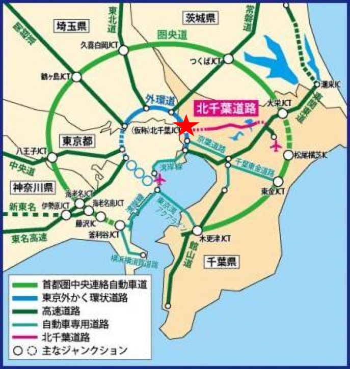 また、外環道と成田空港を結ぶ北千葉道路の松戸区間も事業認可され、今後、更に利便性が高まることが期待されています。